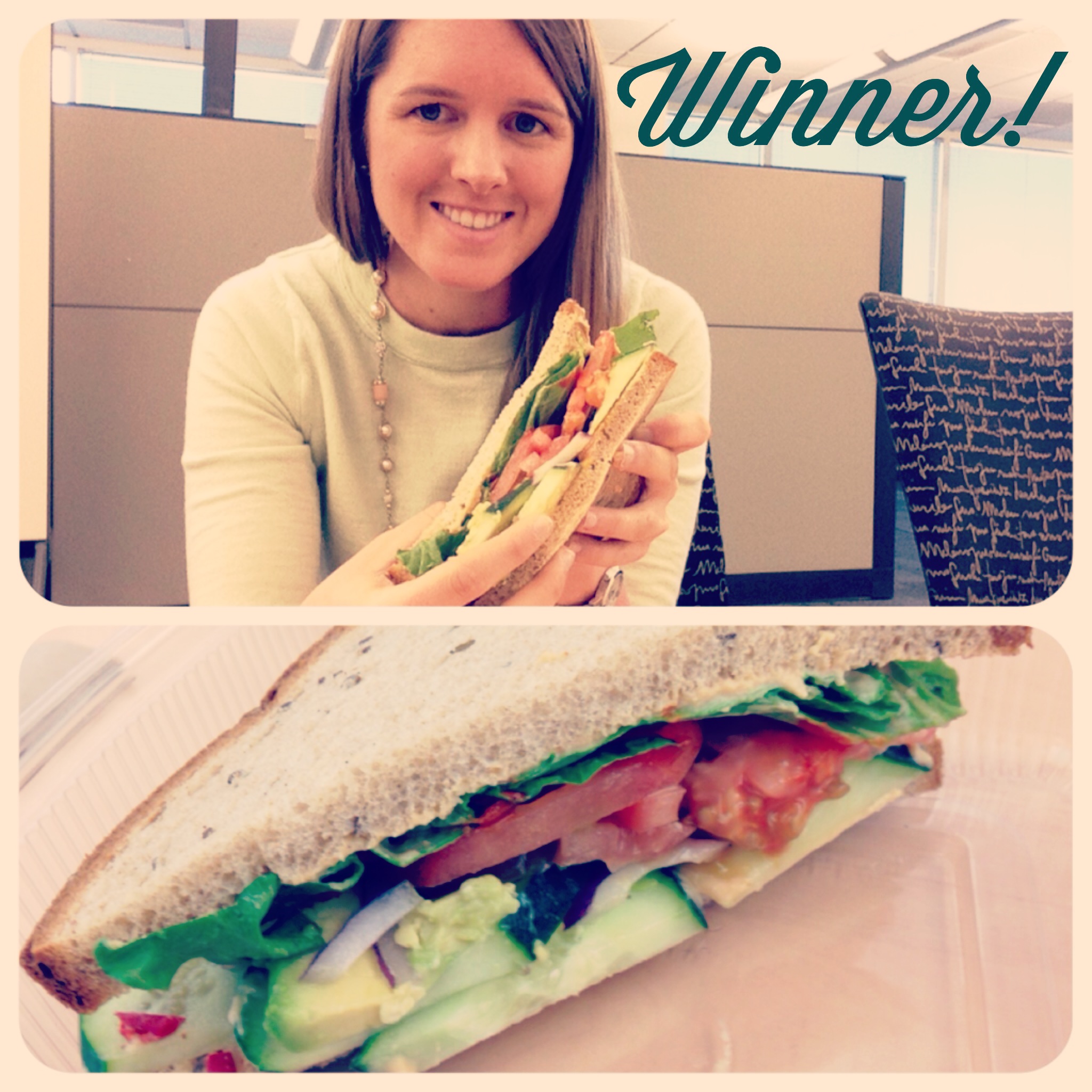 Our campus at work has about 1000+ people and the cafeteria asked employees to submit their best sandwich recipe. There was going to be a round of voting and the top 5 sandwiches would appear as regular menu items. So I decided to submit one for the heck of it. I didn’t even tell anyone because I didn’t think I had a chance to win – “who’s going to vote for a vegan sandwich?!” The ingredients are hummus, avocado, cucumber, tomato, onion, black pepper and sriracha on whole wheat. And guess what? I WON the top 5!! So now my sandwich is a regular menu item and the Chef said it’s been a popular choice. Plantpower!!