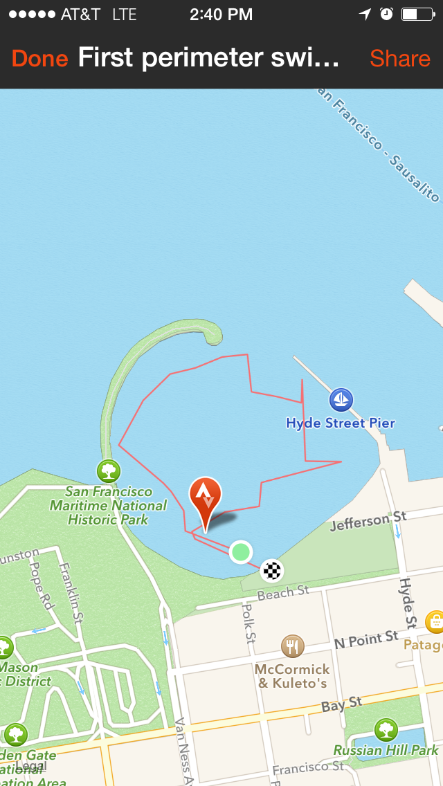 Sunday the 20th. Swim. Aquatic park open water perimeter swim. 0.8 miles.