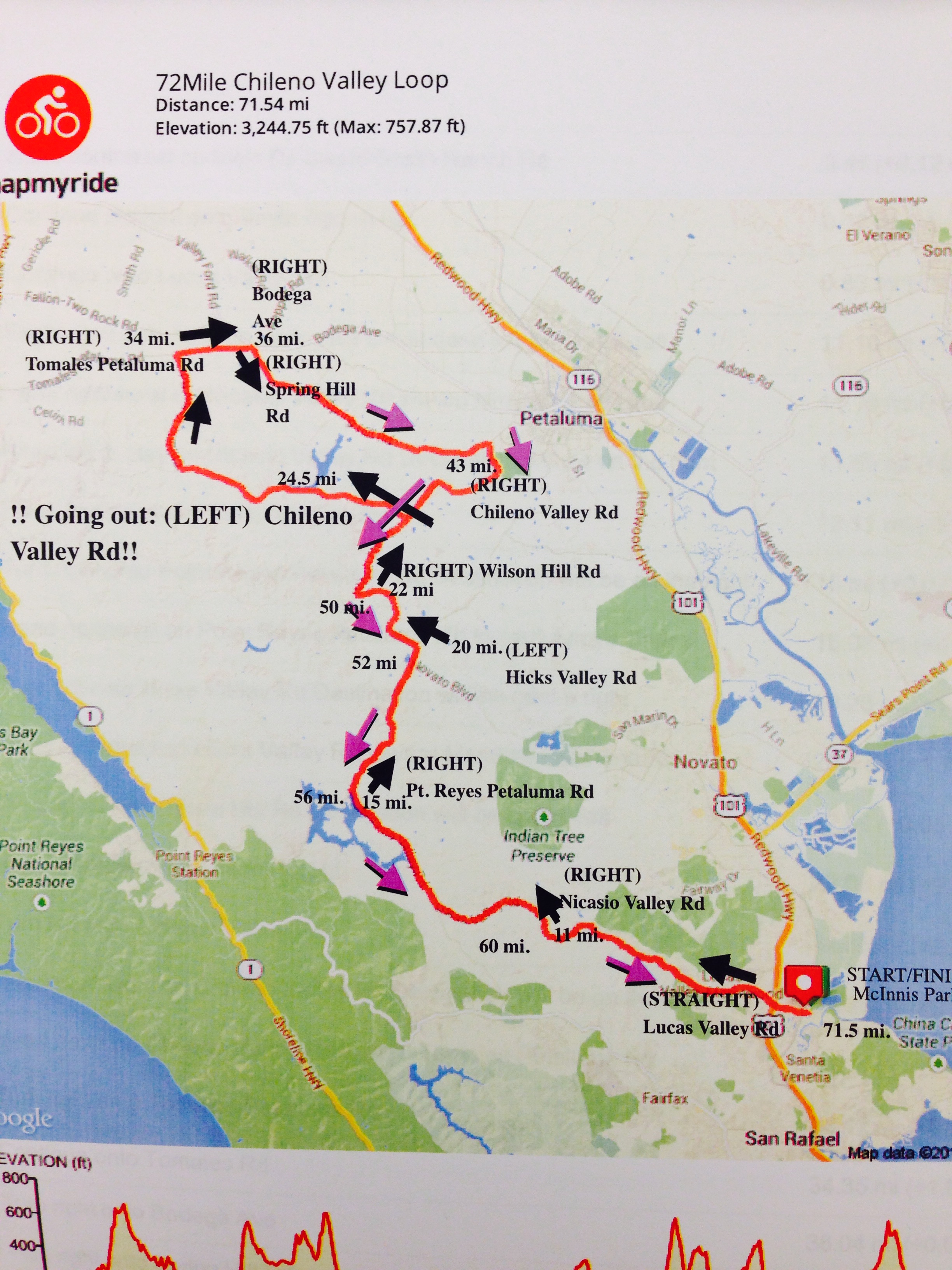 Our 72 mile bike ride (~5 hours) on Saturday started in San Rafael and brought us through Nicasio, over Wilson Hill, and around the Chileno Loop and back. Normally it would’ve been a pleasant and beautiful ride with challenging climbs and gorgeous views. But Mother Nature wasn’t happy this Mother’s Day and had different plans… for wind. And lots of it. From all directions. Without any signs of slowing down.