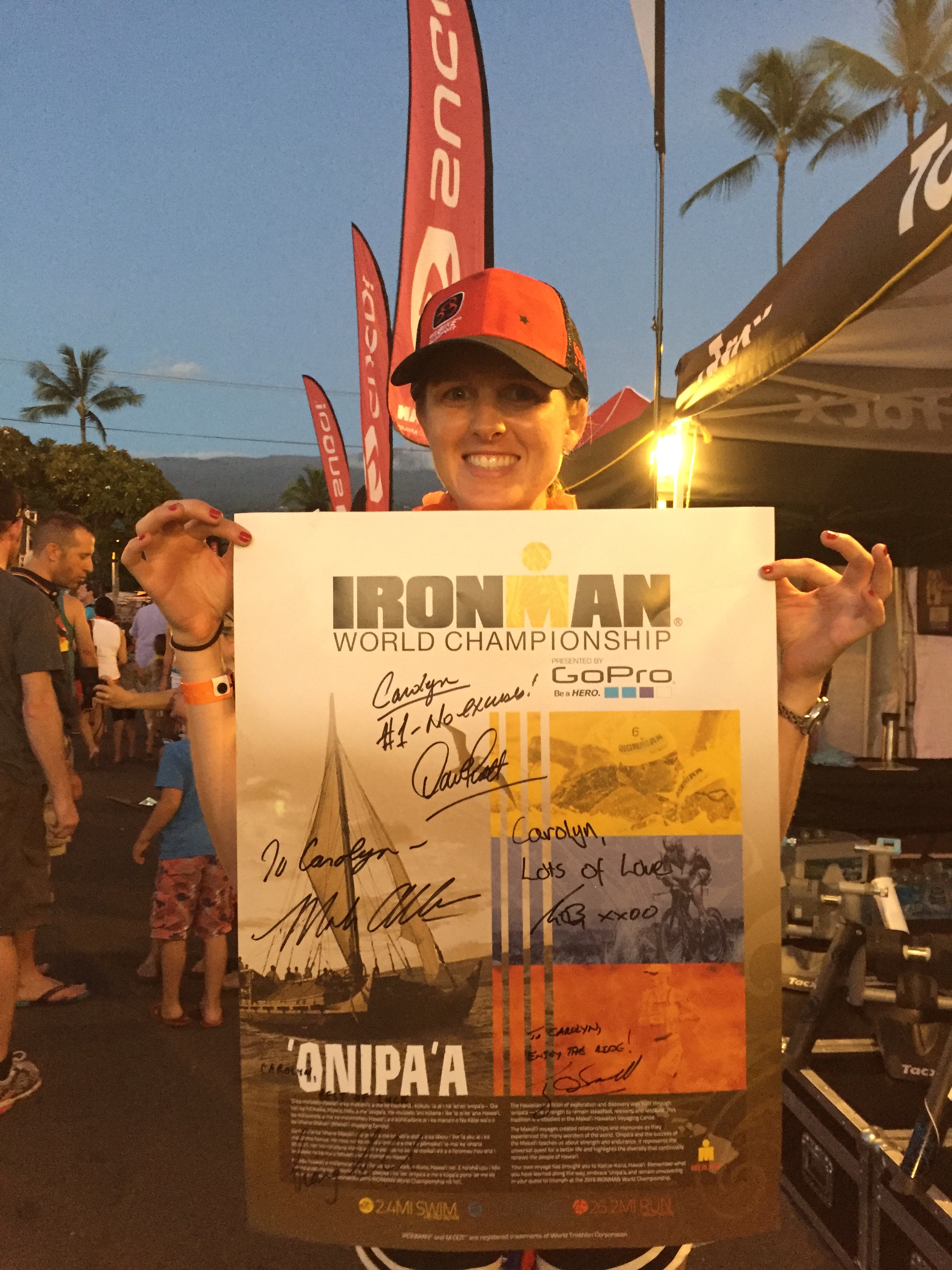 It’s the night before the big race and butterflies are fluttering in my stomach. This is always the hardest part of the race; the anticipation. I know once I hit the water at 7:10am I’ll know exactly what to do for the rest of the day. But I’m nervous, excited, grateful and inspired. I just still can’t believe that I’m here in Kona for the World Championship. It’s a dream come true and I’m soaking in every single moment. I’m so happy!! And I’m especially happy thatΒ Michael Rohde, Mark Bollozos and my parents are here to support me!