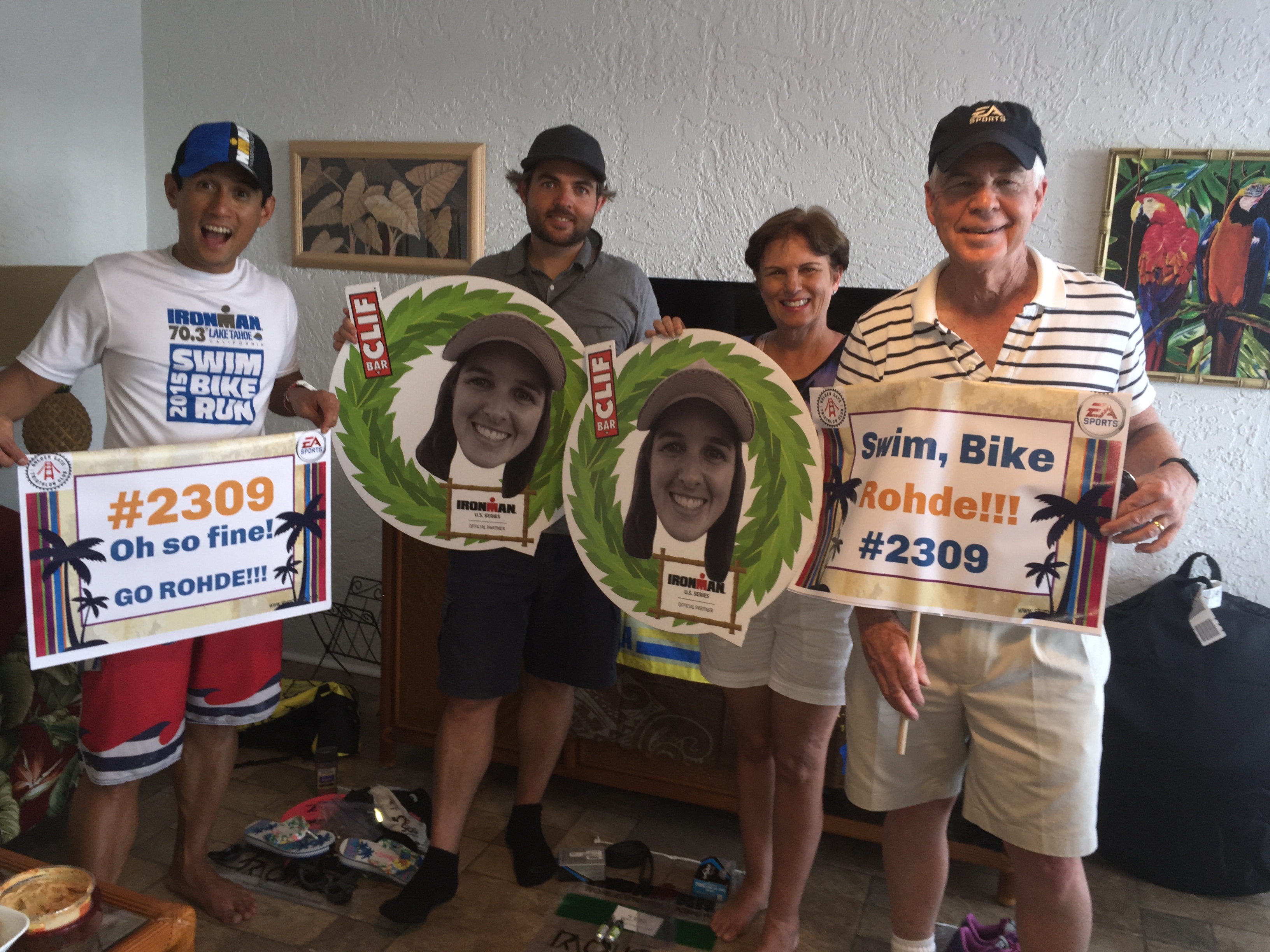 I picked up Mark from the airport and got ready to meet my parents and brother Michael Rohde at the Athlete Banquet. I’m so happy to have Mark and my Ohana (“family” in Hawaiian) here to support me in this Ironman adventure. It’s a long way to come and I appreciate the signs, cheers, and support. Mahalo to my Ohana!!